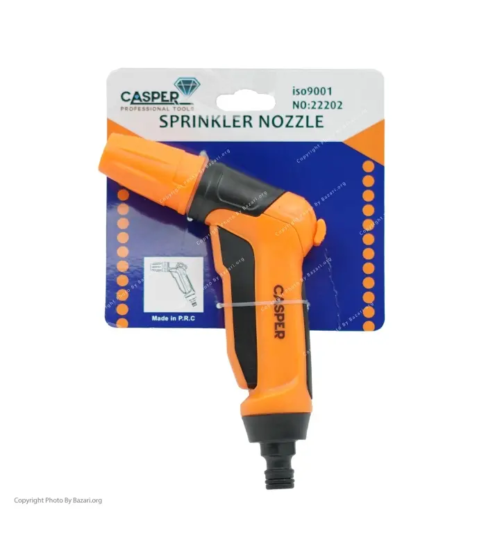 آب‌پاش 7 حالته کوپلینگی Casper مدل 22202 محصولی ساخت چین هست که برای آبیاری باغچه، گلخانه و شست‌وشوی سطوح کاربرد داره. این مدل قابلیت اتصال به شیلنگ‌ به صورت کوپلینگ رو داره و مجهز به قطع‌کن جریان و تنظیم فشار آب هست. همچنین دارای تأییدیه ISO9001 بوده و با سری متغیر  پاشش مختلف، امکان استفاده‌ی متنوع در شرایط مختلف رو فراهم می‌کنه.
