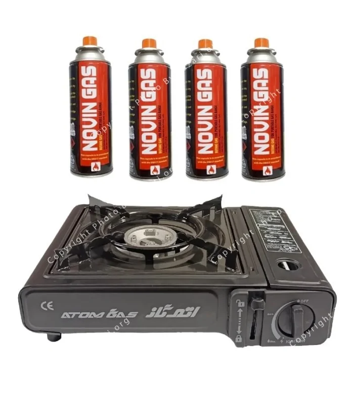 اجاق کیفی مسافرتی اتم گاز به همراه 4 عدد کپسول