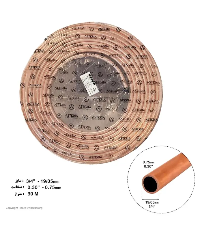 لوله مسی کلاف 50 متری سایز 19 - 3/4 اینچ کد 30-0 آستریا (Asteria)