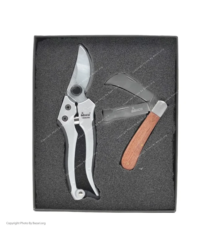ست هدیه قیچی هرس و چاقو پیوند باغبانی ۲ پارچه یک مجموعه کاربردی و باکیفیت برای باغبانان، کشاورزان و علاقهمندان به باغ و گیاه است. این ست شامل یک چاقو پیوندزن دو تیغ سرکج با دسته چوبی و یک قیچی باغبانی حرفهای بهکو بوده و تمامی نیازهای هرس و پیوند گیاهان را بهخوبی پوشش میدهد.