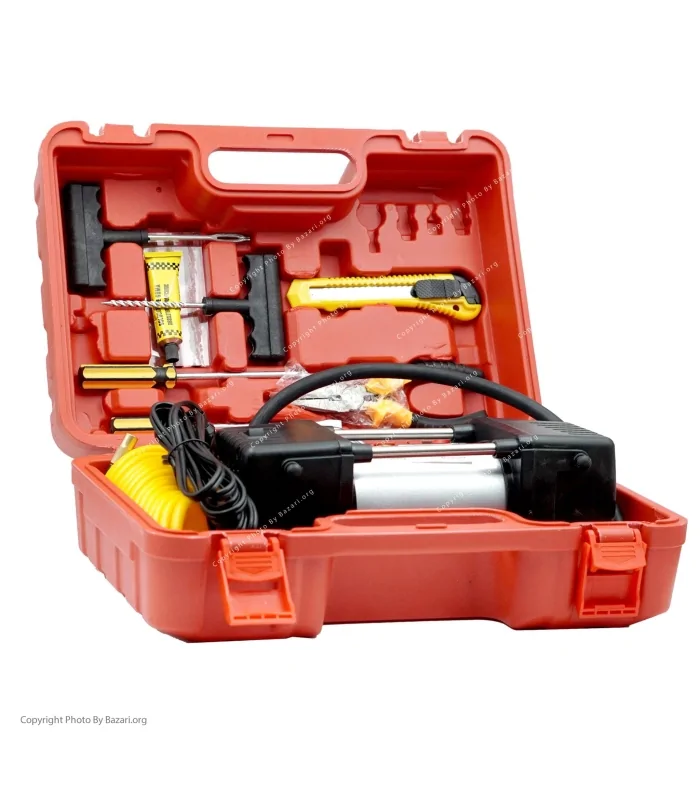 پکیج کمپرسور پمپ باد آنالوگ به همراه لوازم پنچرگیری مدل CY102-7E یک مجموعه حرفهای و کاربردی برای دارندگان خودرو است که امکان باد کردن تایرها و انجام عملیات پنچرگیری را به راحتی و سرعت بالا فراهم میکند. این کمپرسور آنالوگ با فناوری ۲ سیلندر و فشار باد 150 PSI قادر است انواع تایر خودرو را در کوتاهترین زمان پر کند.