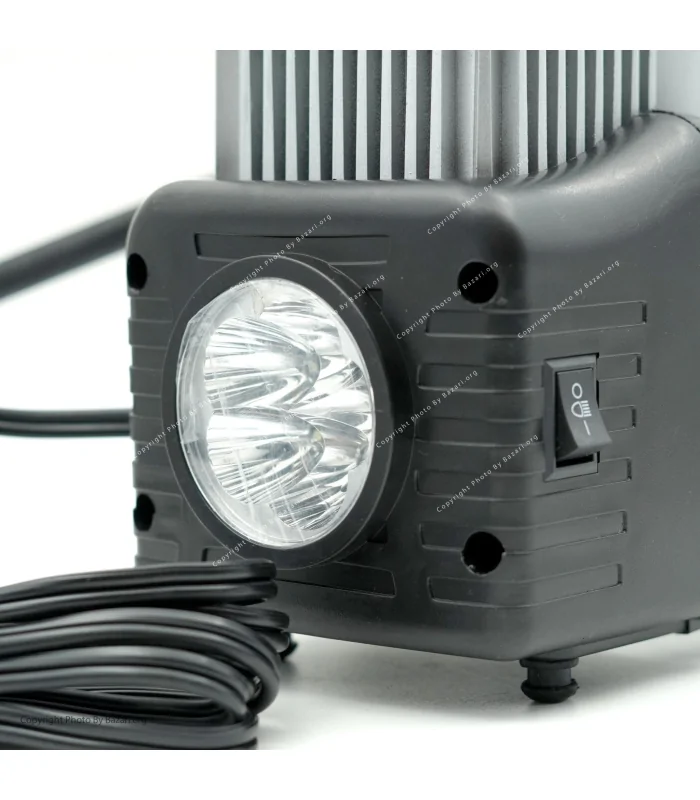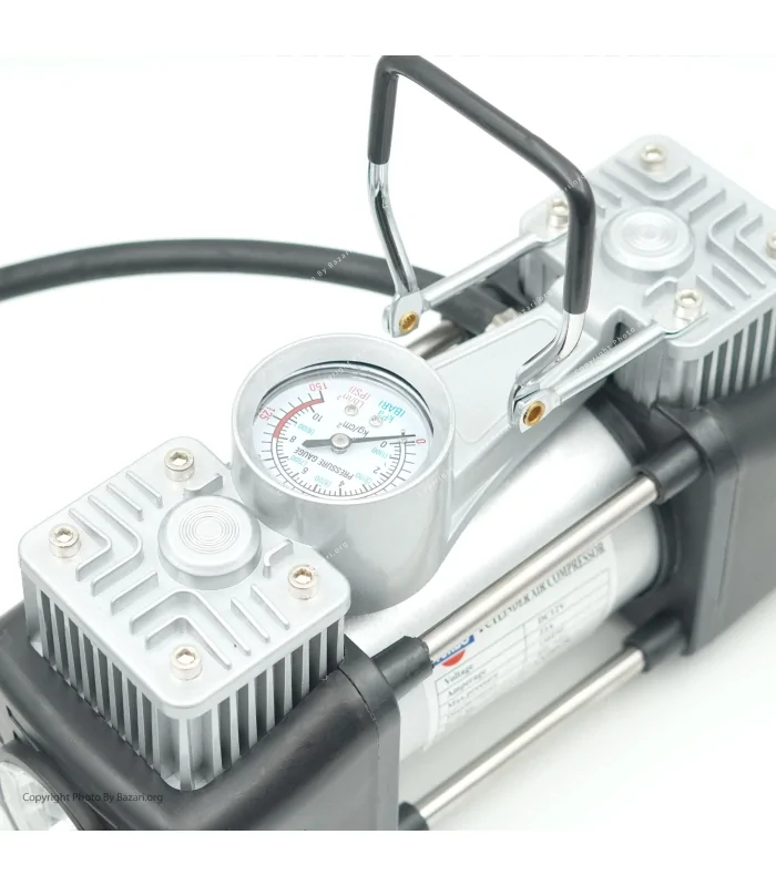 این کمپرسور دارای سوکت فندکی خودرو، گیره اتصال کابل باتری، شیلنگ ۱.۵ متری و چراغ قوه است تا در هر شرایطی بتوان از آن استفاده کرد. فشارسنج آنالوگ ، دبی هوا 85 لیتر در دقیقه و بازه دبی ۰-۵۰۰۰ لیتر در دقیقه، کنترل دقیق باد و ایمنی را تضمین میکند. وزن کمپرسور تنها ۳ کیلوگرم است که حمل و جابجایی آن را آسان میسازد.