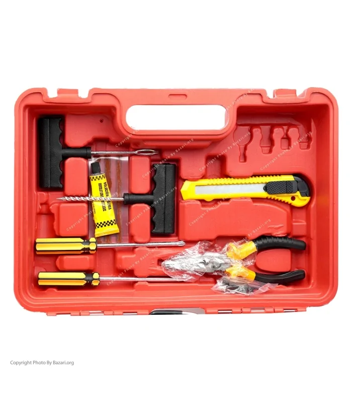 موکت بُر / ۲ عدد پیچ گوشتی دوسو و چهارسو دوطرفه / ۱ عدد دم باریک / ابزار پنچرگیری / جعبه مخصوص با قابلیت قرار دادن کلیه متعلقات